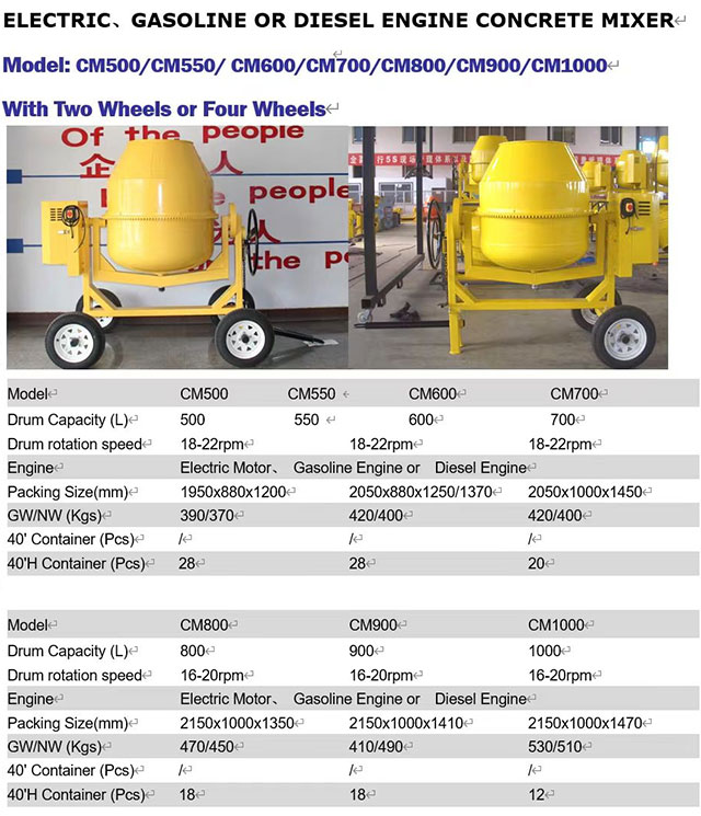 Para diferentes escalas de proyectos, la hormigonera ZCJK ofrece una variedad de modelos: el modelo pequeño de 200 L es adecuado para casas rurales de autoconstrucción, endurecimiento de patios y otros escenarios, flexible y móvil; el modelo mediano 500 es adecuado para el mantenimiento de carreteras municipales, construcción comunitaria y otros proyectos, equilibrando eficiencia y movilidad; El modelo grande de 1000L es adecuado para proyectos de gran escala, como la construcción de grandes fábricas y la construcción de puentes, y satisface las necesidades de mezcla de alta producción. Además, admite la personalización de la capacidad del tambor de mezcla, la potencia del motor, el modo de descarga y otras necesidades especiales, para lograr verdaderamente una "adaptación de escena personalizada según la demanda".